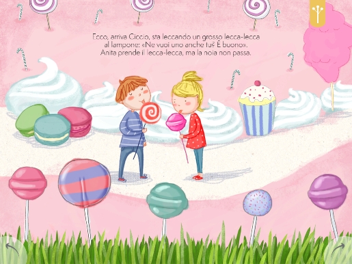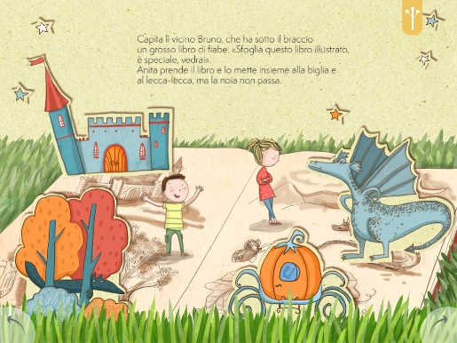 La narrazione prosegue proprio attraverso le continue proposte degli amichetti e le negazioni di Anita, dando però ogni volta ai lettori l’occasione per interagire con le situazioni rappresentate: piccole interazioni, da cui prendono vita semplici animazioni (realizzate con pochi fotogrammi), ma sempre funzionali ad amplificare quello che i bambini si immaginano e progettano di fare con i loro giochi. Si può sognare di viaggiare su un’auto (quando in realtà si gioca con delle macchinine), si possono vedere draghi e castelli prendere vita (dalle pagine di un libro), si può sognare di essere in un mondo di zucchero (basta avere in mano un lecca lecca)… anche se niente è mai abbastanza per Anita, fino a che qualcosa nella sua testa non farà clic!