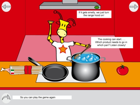 Aiutando la Giraffa Bo a organizzare il pranzo i bambini apprendono, giocando, le routine legate all’alimentazione e alla preparazione del cibo, dall’acquisto delle verdure e degli altri alimenti, al riordino della dispensa, dalla cucina al lavaggio dei piatti.