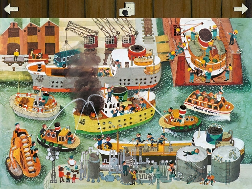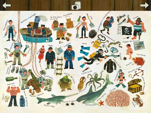 Per i nostalgici del genere, Ravensburger ha tradotto in digitale le scene affollate dei libri di Mitgutsch, in applicazioni che rimangono molto fedeli alla versione cartacea.  In questo “Vieni con me al mare” – cui segue “Vita nella fattoria” e “La grande città” –i bambini sono invitati a fare un’escursione al mare per conoscere la vita movimentata del porticciolo dei pescatori, della spiaggia affollata, dello Yacht Club e del porto merci. Una scena visualizza inoltre, con un approccio da enciclopedia illustrata, gli animali del mare, mentre lo spaccato di una nave racconta le varie attività che avvengono a bordo.