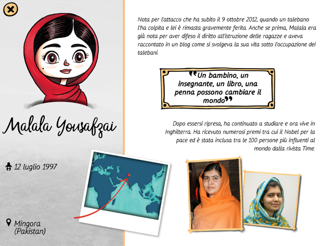 La mia impressione è che, sebbene compaiano talvolta parole non semplici (ad esempio, talebani), per le nozioni di base, lo stile delle illustrazioni e per l’insieme del progetto, Donne straordinarie sia un’app pensata per un pubblico di bambini fra i 4 e i 7 anni. Ma il fluido apparato interattivo la rende perfetta per ispirare lettori anche più grandi che poi – se incuriositi – potranno cercare altrove informazioni sulla coinvolgente missione ecologista di Wangari Maathai o sulle passeggiate nello spazio di Svetlana Savitskaja.