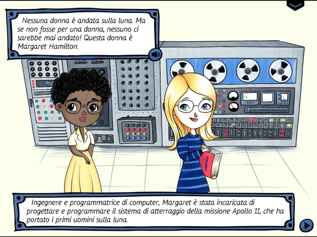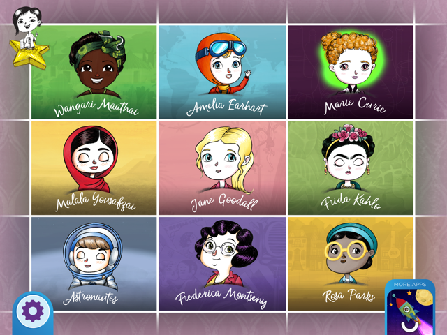 L’app si concentra su mini-biografie animate raccontando vita, scoperte, invenzioni, difficoltà e atti di resistenza di Wangari Maathai, Amelia Earhart, Marie Curie, Malala Yousafzai, Jane Goodall, Frida Kahlo, Rosa Parks e di un gruppo di Astronaute americane, sovietiche e cinesi. Buona la colonna sonora e le 14 lingue disponibili.