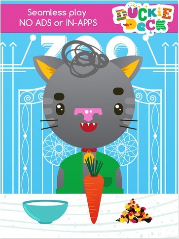 DuckieDeck Collection è di fatto una raccolta di sei giochi adatti ai bambini dai 2 ai 4 anni: si dà mangiare agli animali offrendo loro l’alimento corretto (al coniglio la carota, al leone una bella bistecca!), si raccolgono frutti e ortaggi per mangiarli a morsi, si scoprono i simpatici personaggi che escono da un cappello magico, si puliscono pavimenti e superfici sporchi fino a fali tornare brillanti…. Si tratta di attvità che non comportano abilità particolari, ma che offrono al bambino le prime opportunità di interazione con lo schermo touchscreen di iPad e iPhone. Il tutto accompagnato da un sound design appropriato, con melodie e suoni che “commentano” le diverse proposte di gioco e le interazioni effettuate dal bambino più o meno correttamente (per esempio quando si ricompongono le sagome degli animali secondo la logica dei cubi).