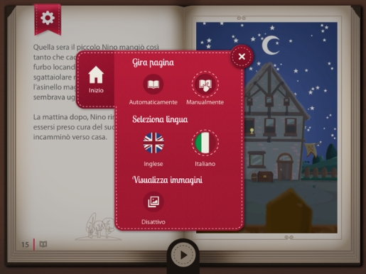 Fiabe italiane: Nino e i 3 doni magici. Sviluppatore: Cappuccinoapps / Clarityinternational. Supporto: iPhone, iPod Touch e iPad. Richiede l’iOS 5.1 o successive. Questa app è ottimizzata per iPhone 5. Lingua: italiano, inglese. Prezzo: € 1,79