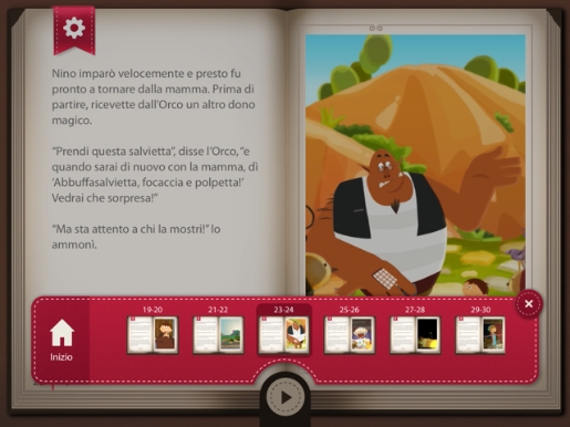 La book-app di Nino, che ricorda molto da vicino per impianto e funzionalità quelle dello sviluppatore francese Chocolapps, è strutturata come un libro sfogliabile, fatto di testi (che possono essere fruiti anche in modalità autoplay), immagini e animazioni.
