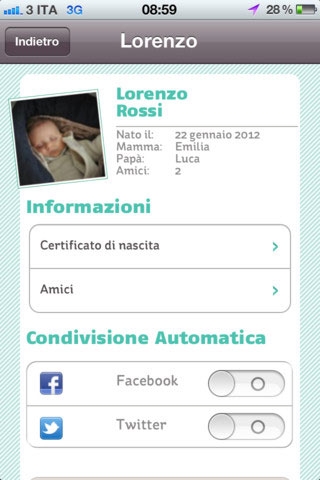 HiBaby. Sviluppatore: HiBaby SRL. Supporto: iPhone, iPod, iPad. Richiede iOS 5.1 o successive. Lingua: Italiano e Inglese. Prezzo: 2,69 euro.