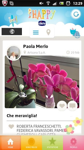 Con un tap sul profilo di un amico posso ricevere i suoi aggiornamenti tramite la funzione “Follow” e attraverso il pulsante in alto posso decidere se vedere i post di tutti gli utenti o solo quelli degli amici che seguo. Posso inoltre postare dei “Like” a forma di cuore e dei testi di commento ai contenuti degli altri utenti. Inoltre IHappy funziona come un “diario” personale, una specie di archivio selettivo che salta capricci, notti insonni e pannolini puzzolenti e racconta e conserva i sorrisi, gli abbracci, le quotidiane scoperte di tuo figlio. Accedendo al mio profilo trovo infatti l’archivio dei miei check-in della felicità, che con immagini e parole raccontano tutti i miei momenti importanti.