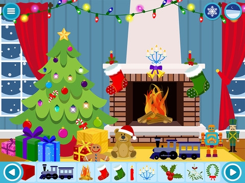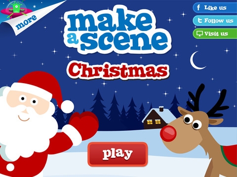 Questa applicazione fa parte di una serie di sticker book digitali, che permettono di scegliere un’ambientazione e collocarvi una serie di personaggi e di oggetti. Make a scene Christmas consente di selezionare diversi paesaggi tipicamente natalizi – una pianura innevata, un bosco in una notte stellata, una serie di baite montane, un salotto con caminetto e albero di Natale…