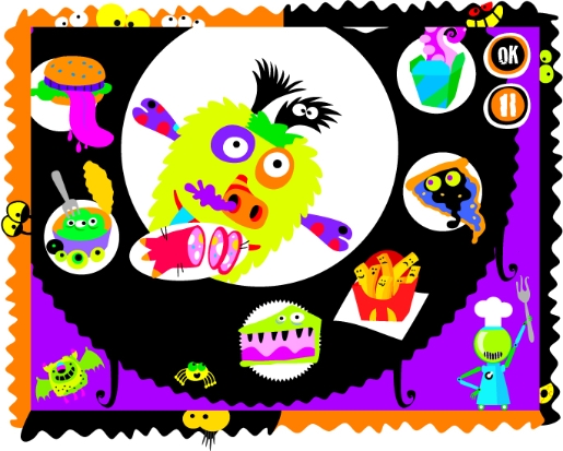 L’ultima nata in casa Ebook&Kids, lanciata proprio il giorno di Halloween, è un “miscelatore” di mostri. Al bambino la scelta della forma e dei colori del corpo: si preme Go! ed ecco la sagoma. Poi via con gambe occhi, bocca, naso e urla (anche la propria, da registrare con l’apposito microfono) scegliendo su una ruota girevole i pezzi più mostruosi. La creatura così realizzata (che risulterà perlopiù coloratissima e un po’ goffa) va poi nutrita e presa in giro, con scherzetti e soprese.
