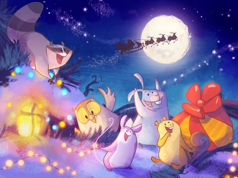 In questa storia animata e interattiva si può scoprire come gli animali festeggiano il natale attraverso la storia di cinque famiglie di gufi, scoiattoli, conigli, topi e orsetti lavatori, che vivono tra i rami di un vecchio albero. A ognuno di loro Babbo Natale ha portato dei regali, che il piccolo lettore dovrà aiutare a scartare. Con un soundtrack originale dallo scanzonato tono natalizio e le belle illustrazioni di Viola Massarenti.