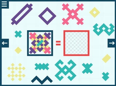 Un’app essenziale nella grafica, che offre poche distrazioni e va diretta al gioco: ricreare il disegno proposto in una prima griglia quadrettata sovrapponendo i pattern a colori nella sequenza corretta su una seconda griglia. La difficoltà cresce a seconda del livello che si affronta e se nel primo i bambini si trovano a loro agio, nel quarto anche i genitori si devono impegnare, usando logica e spirito d’osservazione.