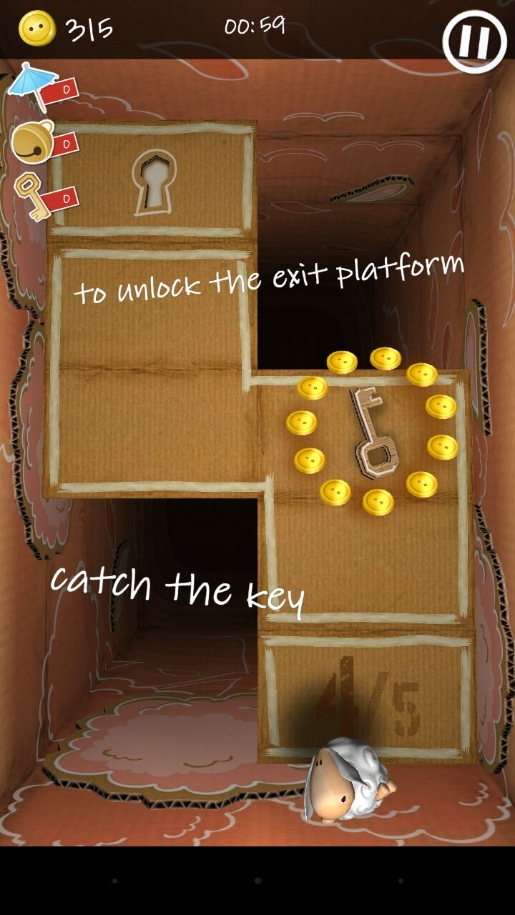 Partendo dal fondo della scatola, dobbiamo far risalire la pecora di piattaforma (di cartone) in piattaforma, fino a raggiungere l’apertura dello scatolone. Anzi, degli scatoloni. Perché la sfida consiste nel riuscire a tirar fuori l’animaletto da una serie di scatole diverse (sono disponibili 3 mondi diversi per un totale di 30 livelli), una dopo l’altra, affrontando di volta in volta nuovi piccoli nemici, superando nuovi ostacoli e risolvendo nuovi puzzle. Il tutto rimbalzando di qua e di là, sempre. Costantemente. E senza distrarsi: è infatti sufficiente spostarsi troppo o troppo poco per far precipitare la nostra amica e ritovarsi a dover ripetere il percorso appena affrontato.