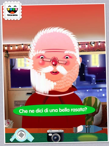 Taglia, colora e metti in piega i capelli e la barba di Babbo Natale. Un’edizione natalizia di un’app di grande successo Toca Hair Salon. Si può scegliere fra due soggetti: Babbo Natale e un abete a cui far crescere e decorare le chiome per prepararli per le feste!