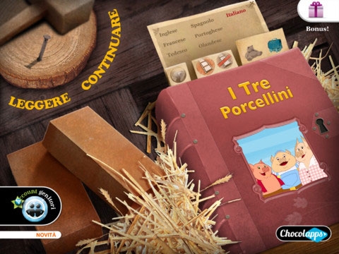I tre porcellini. Sviluppatore:Chocolapps SAS. Supporto: compatibile con iPhone, iPod touch, e iPad. Questa app è ottimizzara per iPhone 5. Richiede iOS 3.2 o successive. Lingue: italiano, inglese, francese, tedesco, olandese, portoghese, spagnolo. Prezzo: 3,59 €. *****GRATIS SU GOOGLE PLAY E AMAZON per un periodo limitato di tempo******