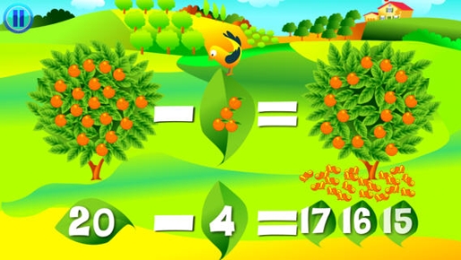 Apprendere le basi di aritmetica, geometria e teoria degli insiemi, con un approccio ludico, facilitato da scenari che combinano ambienti marini con atmosfere da vecchia fattoria e navicelle spaziali. La grafica ha il pregio di essere di lettura immediata, molto colorata e capace di attirare l’attenzione dei bambini. Le attività facilitano l’associazione di cifra, nome del numero e insieme di oggetti, con effetti di autocorrezione piuttosto riusciti, come le navi che affondano in caso di errore.