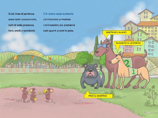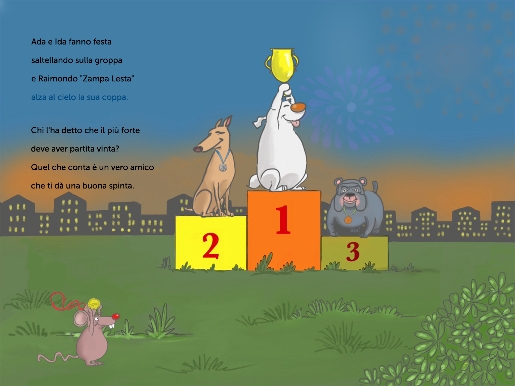 Raimondo è un entusiasta, sogna la medaglia (al touch nel fumetto) non si fa scoraggiare dalle pulci che lo mettono di fronte alla sua scarsa prestanza fisica e alle sue troppo corte zampette, vuole partecipare alla gara; è così concentrato da non accorgersi neanche che il topo si è mangiato tutto il suo cibo e digerisce rumorosamente alle sue spalle (altro passaggio esilarante per i bambini). Con l’inclinazione del device un pallone si sposta nella tavola.