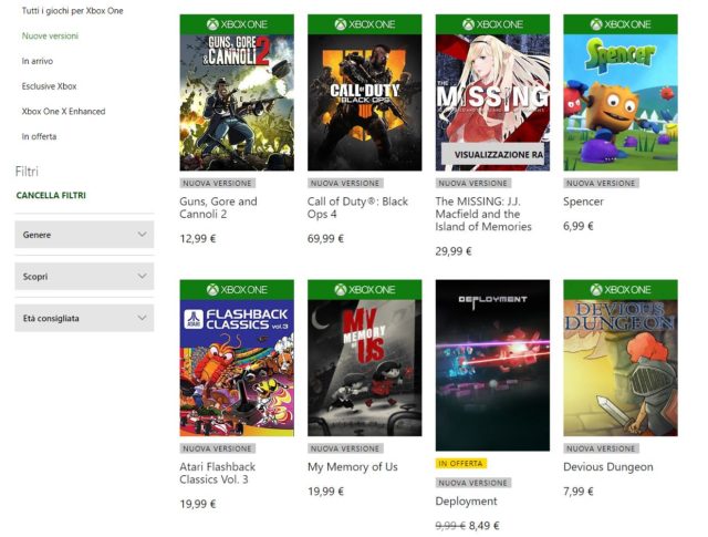Lo store digitale di Xbox One, con giochi in offerta e la possibilità di prenotarli prima dell’uscita.