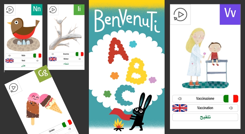 Da qualche settimana, per chi ancora non se ne fosse accorto, abbiamo uno strumento in più per accogliere e iniziare a comunicare con i bambini migranti che arrivano nel nostro Paese. Benvenuti ABC è un dizionario illustrato che coniuga tecnologia digitale e illustrazione allo scopo non tanto di insegnare la nostra lingua ai bambini che per vie traverse, e spesso travagliate, approdano nel nostro territorio, quanto di rompere il ghiaccio nelle situazioni di primo approccio tra loro e gli operatori umanitari che li accolgono.