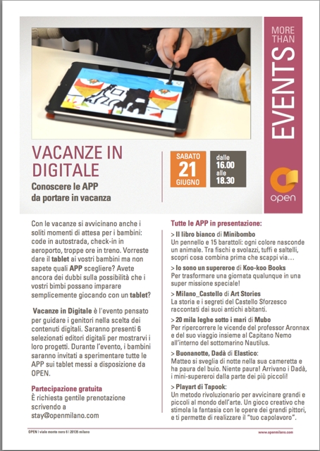 A Milano, nel bello spazio di Open, che definire libreria sarebbe riduttivo, sabato 14 e sabato 21 giugno si svolgeranno due laboratori digitali per bambini a partecipazione libera.