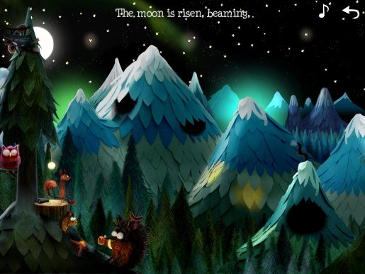 Nel libro digitale converge infatti un altro fortunato format della letteratura per l’infanzia, quello del libro sonoro. Non è un caso che gli editori italiani Rizzoli a Fabbri stiano trasportando le loro vecchie fiabe sonore da cd a app o ebook (per la verità in modo conservativo quanto ad apparato di illustrazioni e interazioni). Una cura sapiente si rileva nel sound design delle applicazioni di Fox&Sheep, sviluppatore tedesco in cui musica, voci narranti e sonorità si ispirano e adattano alle finalità del contenuto proposto, che sia guidare il bambino a spegnere la luce nelle tane di una serie di animali e aiutarli ad andare a dormire (Sogni d’oro hd) o imparare l’inglese attraverso le canzoncine della tradizione (Little Fox Music Box). Con le app de Le stagioni di Antoine e Pierre et le loup di France Télévision si intravede inoltre la nascita di un nuovo genere, che ha nel sound design il suo punto di forza, quello dell’opera musicale su tablet, capace di mixare film, libro animato, gioco e musica.