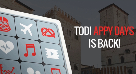 Dal 24 al 27 settembre la città umbra di Todi ospiterà per il secondo anno consecutivo il festival italiano delle applicazioni mobile, il Todi Appy Days 2015. Per l’occasione, Piazza del Popolo, i Portici e i Voltoni del Palazzo Comunale saranno la location da cui grandi e piccole realtà legate al mondo delle applicazioni per dispositivi mobili avranno visibilità nazionale e internazionale.