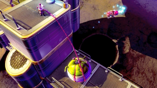 Questo cavo ha anche la possibilità di scaricare una bolla d’aria nella tuta di uno dei due eroi: in questo modo un giocatore guiderà un alieno “gonfiato” mentre l’altro sarà decisamente più smilzo. Questo espediente apre la via a nuove possibilità di gameplay: oltre a muoversi con una buona dose di coordinamento bisognerà dunque capire come sfruttare le stazze variabili degli alieni per spostare oggetti, superare ostacoli o attivare marchingegni di vario tipo.